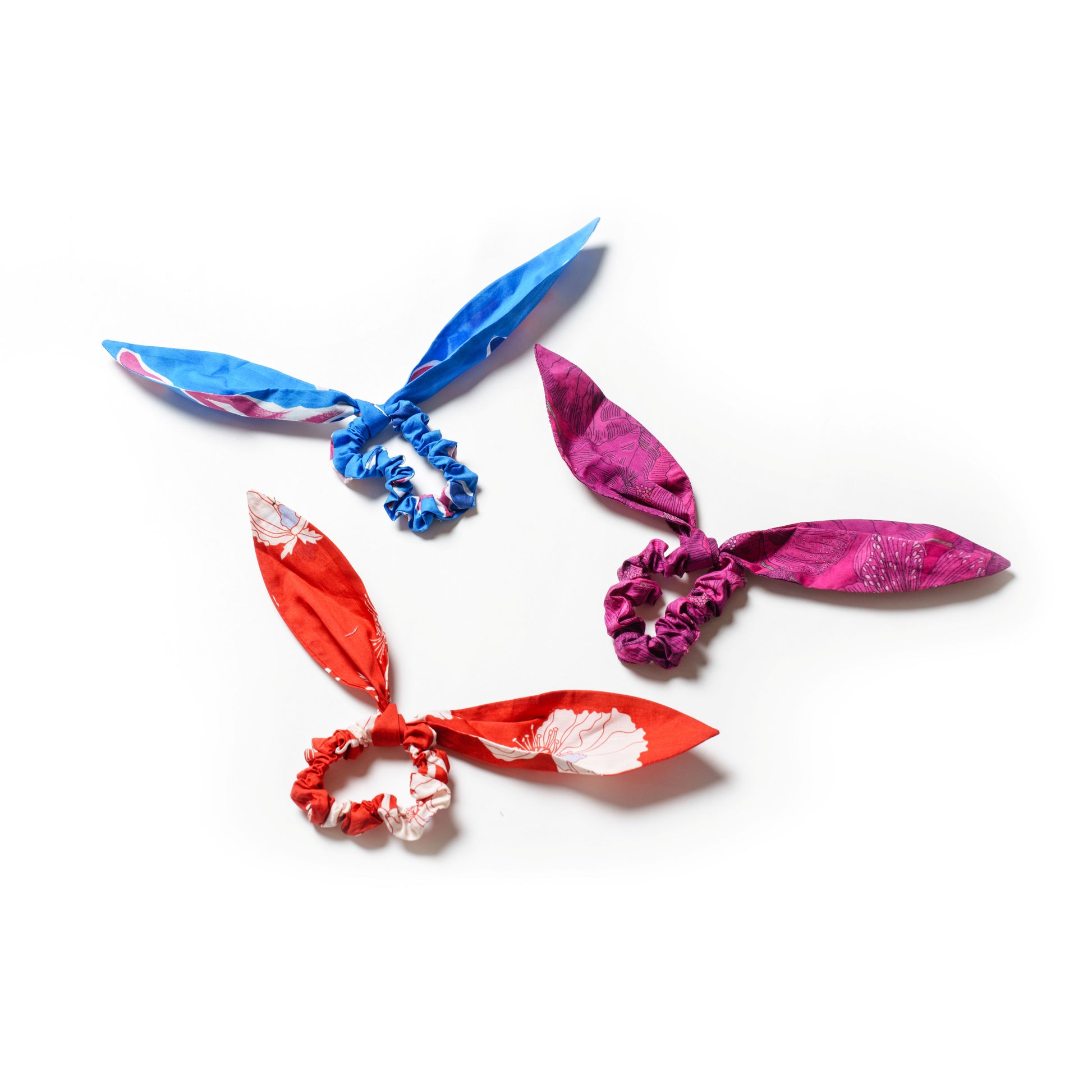 Handmade bunny scrunchie made with production offcut from Liberty Tana Lawn™ and Spence Bryson Linens, perfect mix & match with all mom & girl garments from the store.