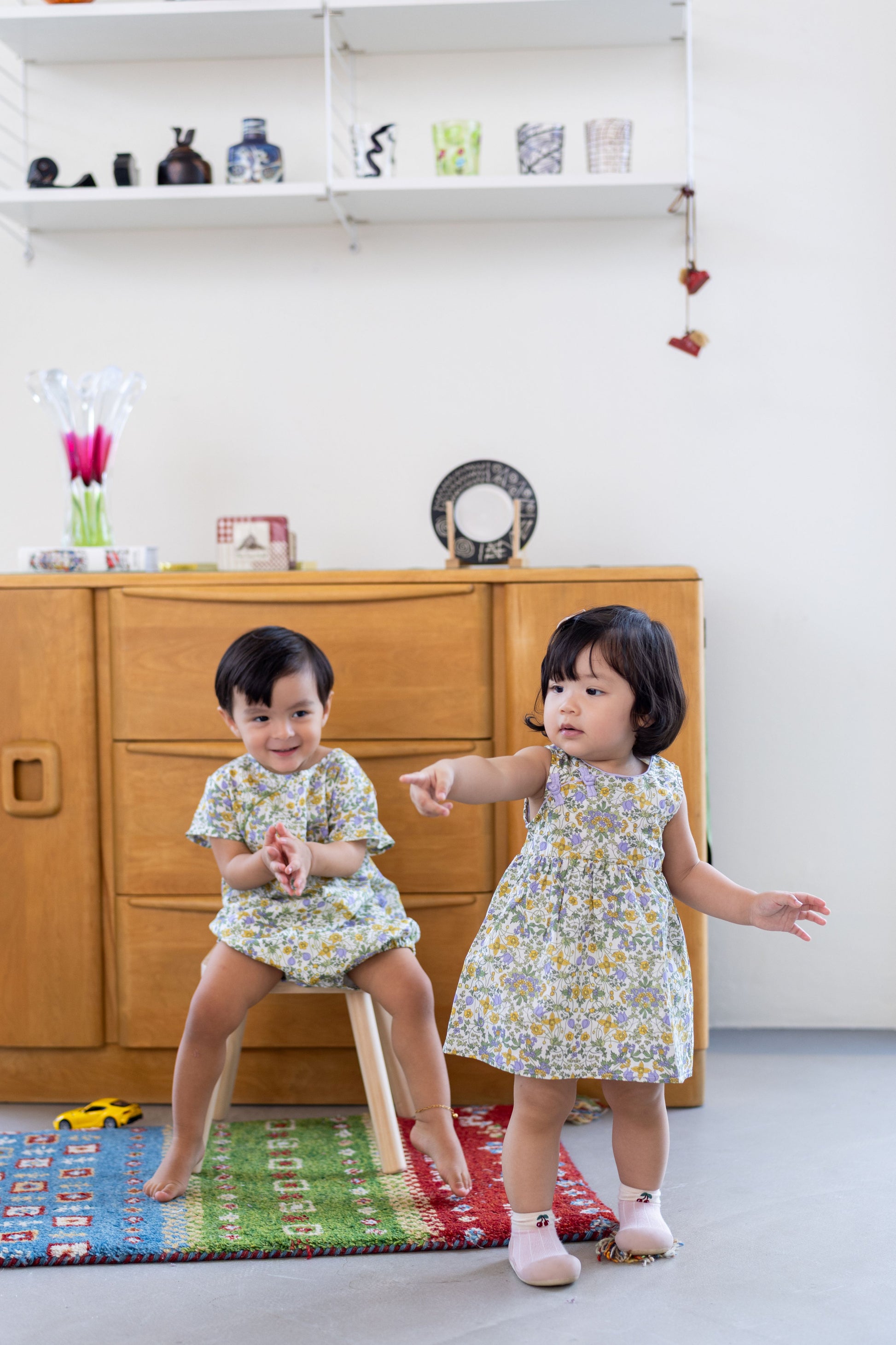 This fully lined onesie dress (a dress on the outside with a romper lining inside — perfectly hiding diapers) brings a refined festive touch to the littlest wardrobes. The front is finished with hand-made Chinese knot buttons for a subtle nod to tradition, while the back opens with easy snap fastenings for fuss-free changes. Comfortable, breathable, and occasion-ready, it’s perfect for New Year visits, celebrations, or simply days when baby deserves to feel a little extra dressed up.