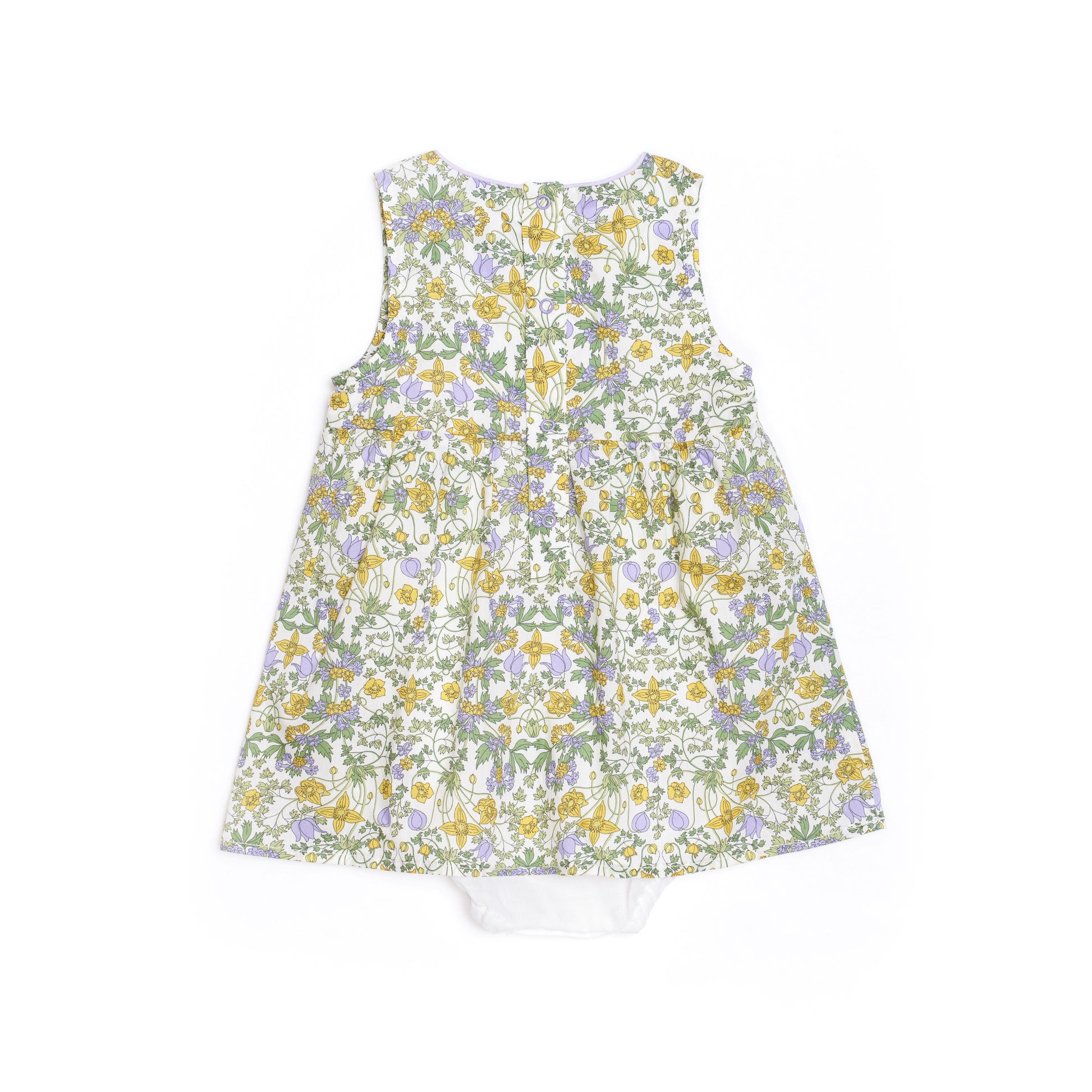 A delicate botanical print featuring intertwined florals and foliage, composed in a calm, balanced rhythm. Printed on Liberty Tana Lawn™ cotton, prized for its silky-smooth touch, breathability, and beautiful drape—lightweight, comfortable, and perfect for warm climates.