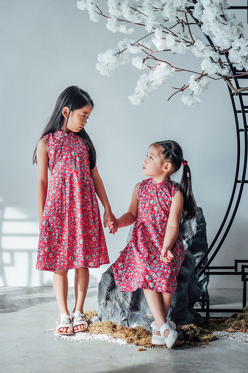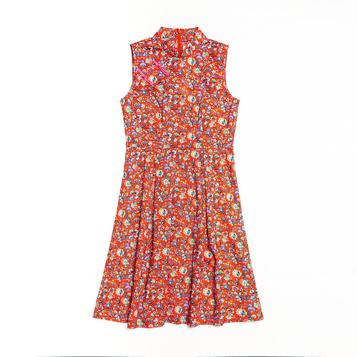 The Claire Sleeveless Cheongsam is made with Liberty Tana Lawn™ , it comes in two colors: Claire Rich yellow and Kazusa Red.