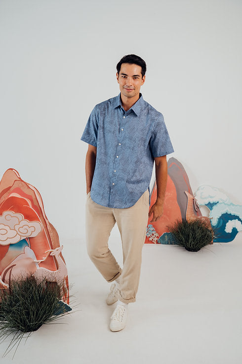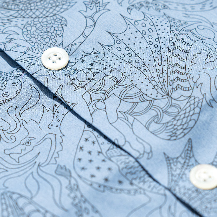 The Delaney Dragon Shirt is crafted with Liberty London Tana Lawn, it is a new shape for our men's collection. The shirt is cut in relaxed fit, you can either wear it buttoned up or layered up for a more casual look.