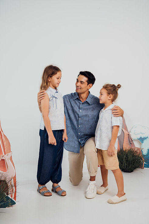 It is our take on the Dragon Year design, festive but also classic to go beyond CNY. It comes in two color ways, blue and white, it also comes with matching pieces for boys, girls moms and babies.