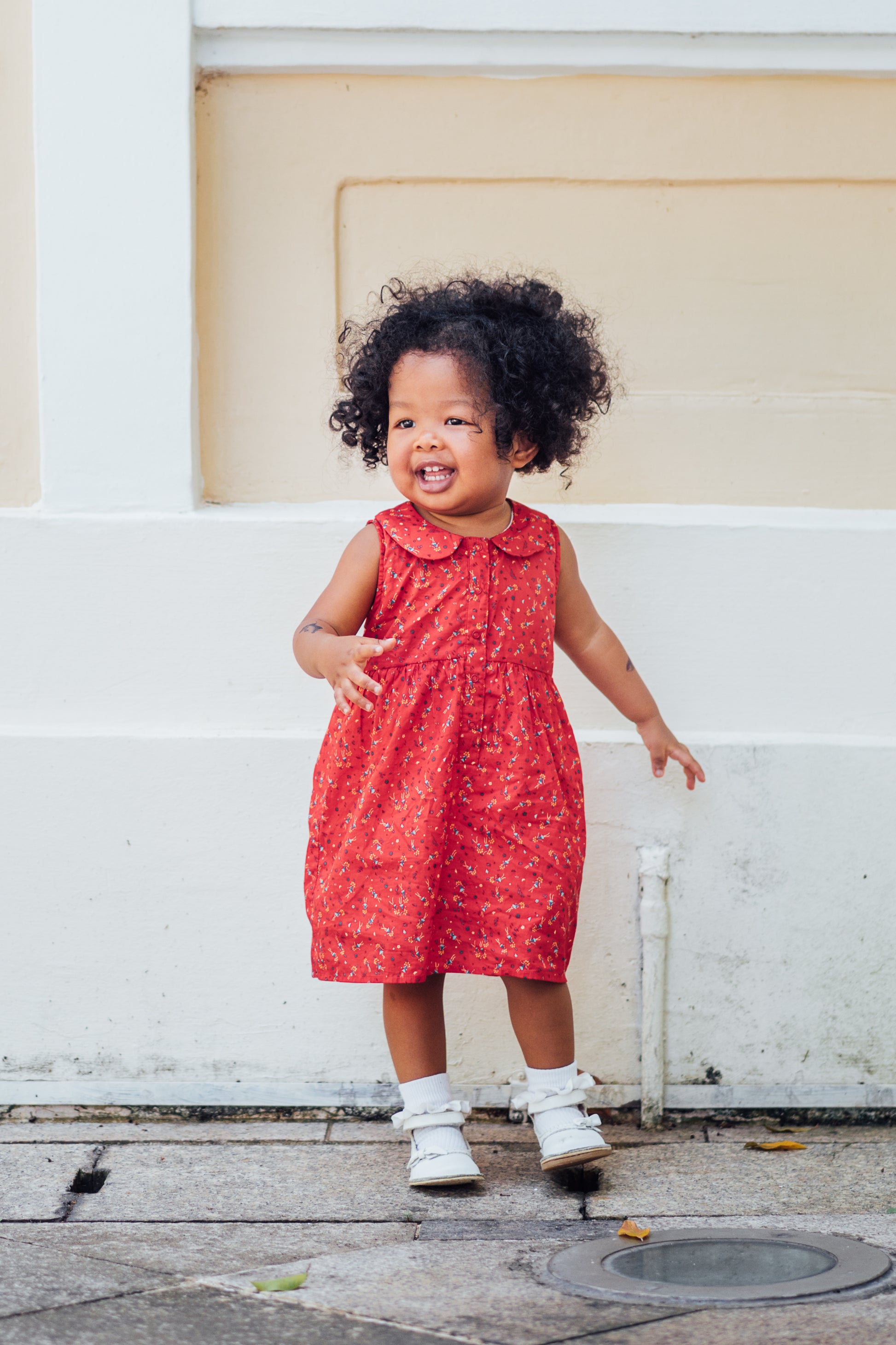 The fully lined onesie dress (dress outside, oneside inside to hide the diapers!), is made with Liberty Tana Lawn™ Dolly Dance print, it features an open front with handmade buttons, the dress is sure to delight.
