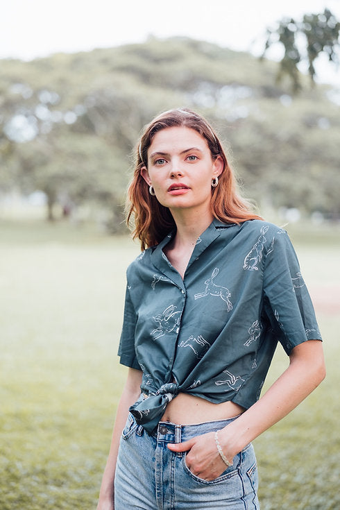 The Ellery Shirt is made with Liberty Tana Lawn™ Elegant Leap print. fastens with a row of mother-of-pearl buttons and tie-front.