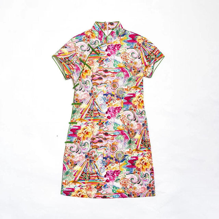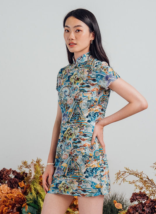 The dreamy Elysia Cheongsam is made with Liberty Tana Lawn™, fully lined with 100 thread count cotton to allow maximum breeziness, crafted with traditional cheongsam techniques for a flattering silhouette, featuring a row of hand made Chinese Knot buttons at the side with a side-slit. It closes with YKK zipper in the back to facilitate to dress up.