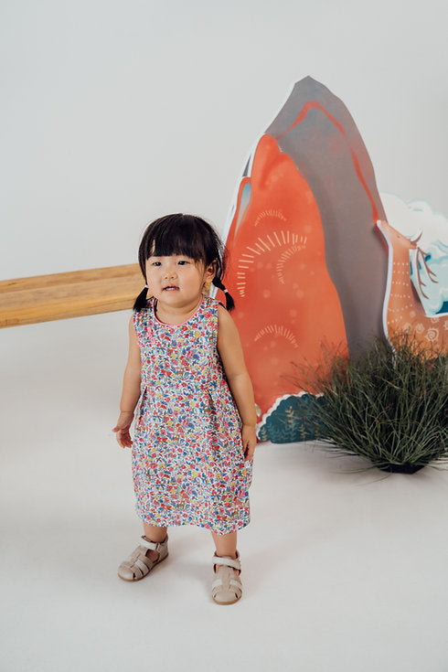 The Forest Party Onesie Dress is made with luxurious Liberty Tana Lawn™ Salter Forest print, the print is an enchanting conversational design, based on a Liberty archive print dating from the 1940s. Reimagined as a celebration of Artemis, the ancient Roman goddess of the wild, this artwork depicts an imaginary landscape of blossoming flowers and lush vegetation as a rich Tree of Life tapestry unfolds, revealing playful illustrations of birds and deer.