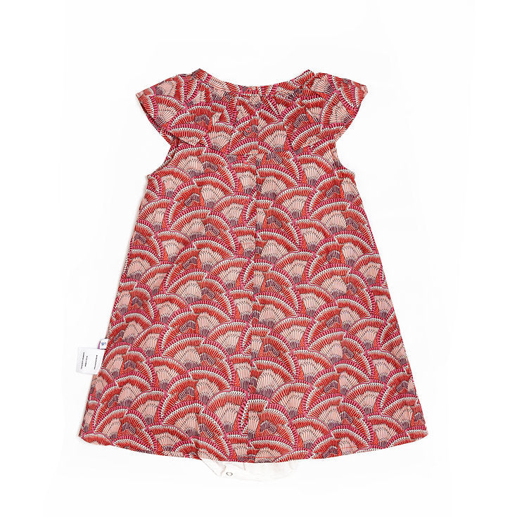 The fully lined onesie dress (dress outside, oneside inside) features the cutest round ruffled collar, and fastens with snap-buttons in the back, perfect for special occassions, or a just feel-like-dressed-up-day.