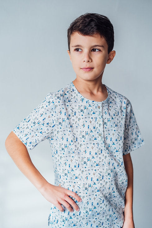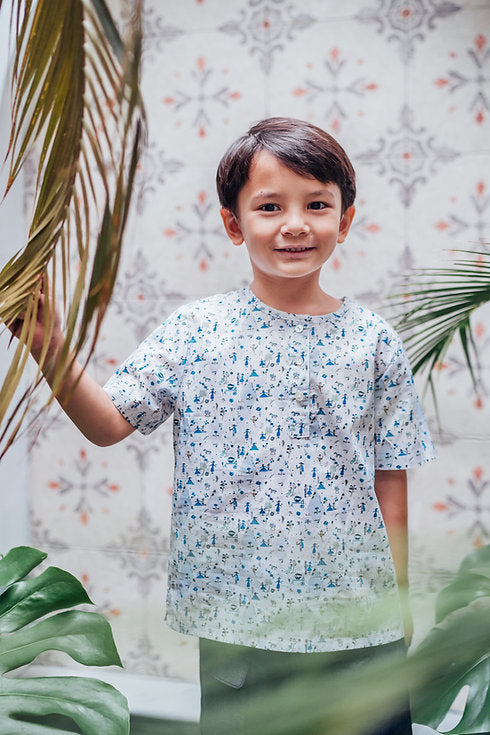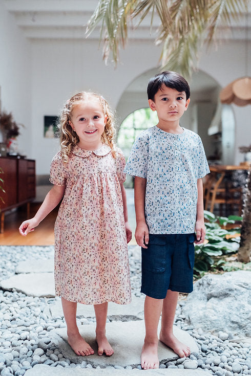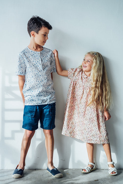 This Henry Linen Shirt in loose comfortable fit is crafted with luxurious Liberty Tana Lawn™ cotton, it features round collar with open front, fastened with mother-of-pearl buttons.