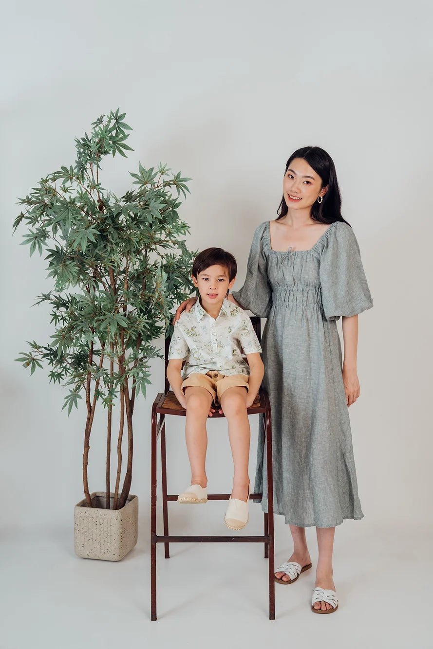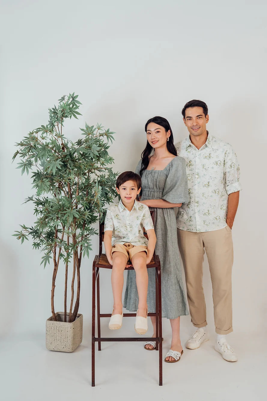 It also comes with coordinated styles for dads, can be matched with our Miranda linen dress for mom and girls.