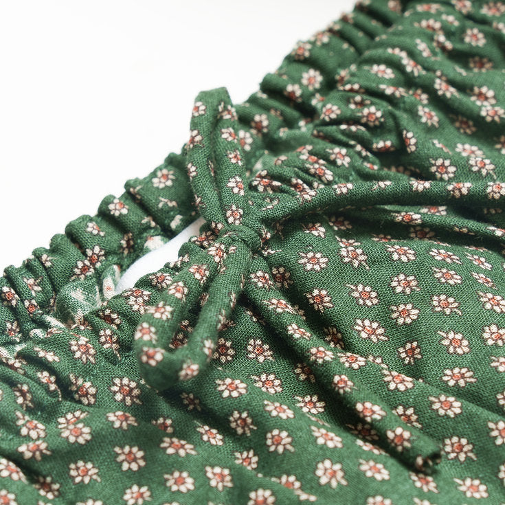 All fabrics used for bochechas garments are natural and of the highest quality, please follow the care instructions from the care label. In some cases, linen may have inconsistencies in the weave, these are not faults but rather natural imperfections and part of the nature of the fabric. The fabric is made with eco-friendly dye, so surface color may come out during the first wash, please do not worry, the garment will not be discolored, but please wash it separately for the care for your cloths. Please allow 5% shrinkage after wash.