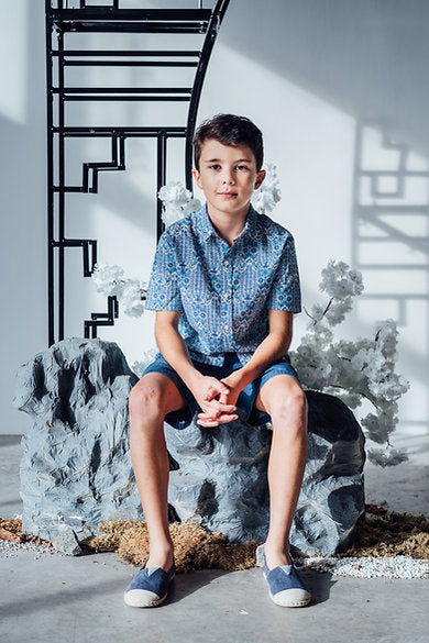 The Lindsay Shirt is made with Liberty Tana Lawn™ Lindsay Garden print, a charming blue that's easily fell in love with.