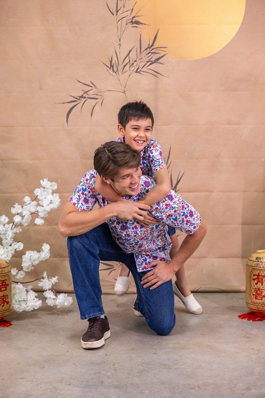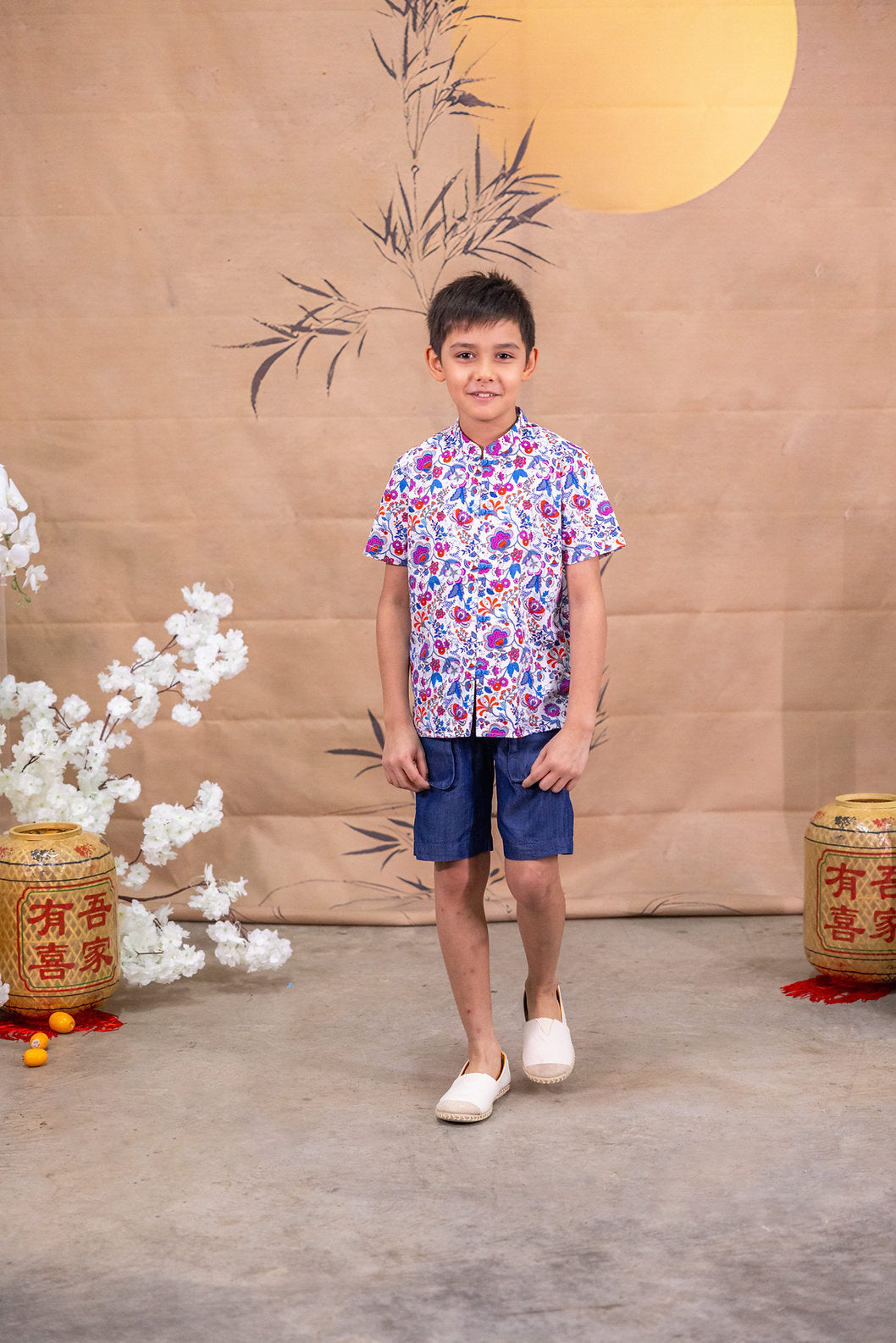 Made with Liberty London Tana Lawn, this shirt features a low mandarin collar and hand-made Chinese Knot buttons. Ideal for Lunar New Year or any festive occasion.