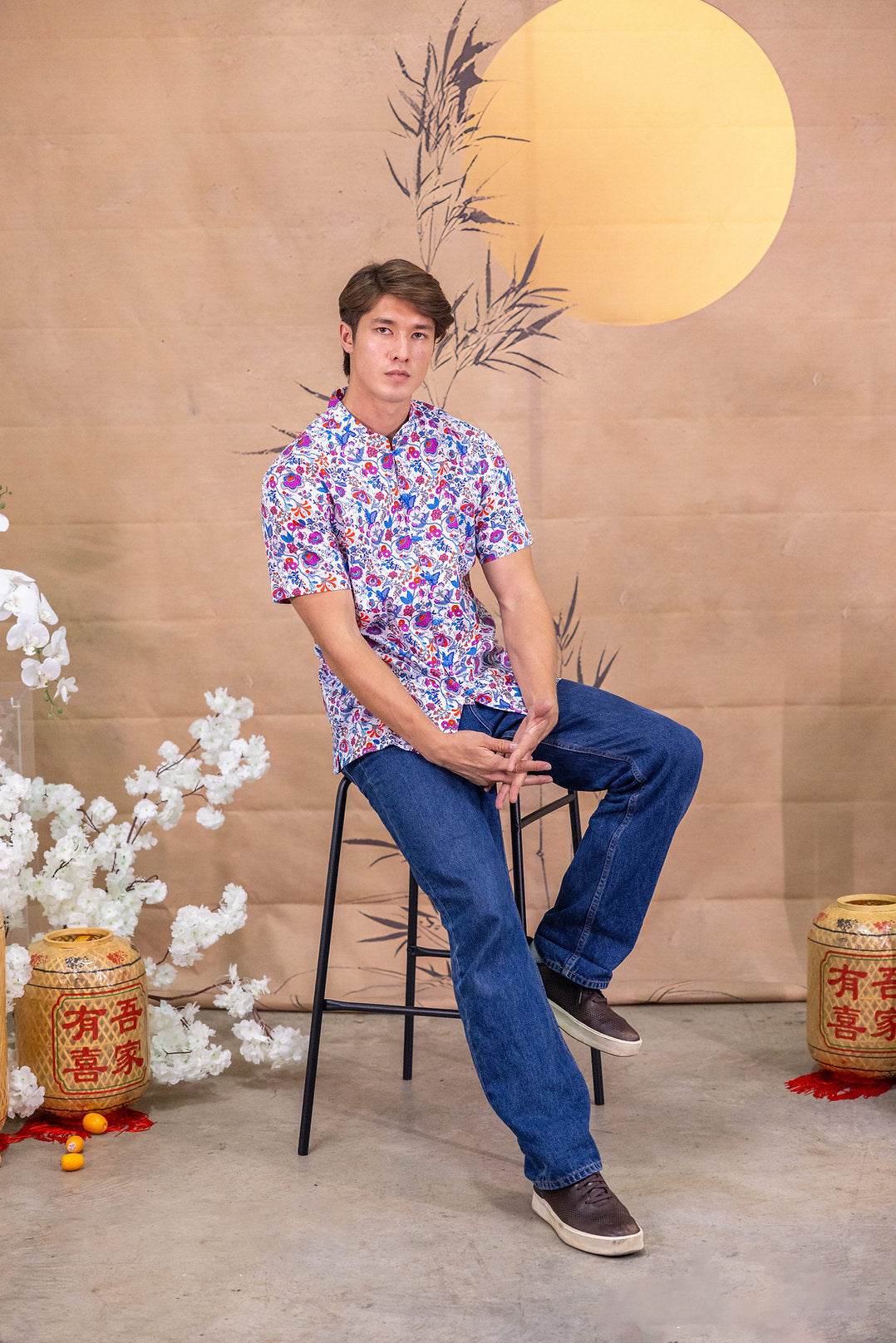 The Mabelle Mandarin Collar Shirt is made with Liberty Tana Lawn™, cutted in a regular fit, featuring hand-made Chinese knot button fastening.