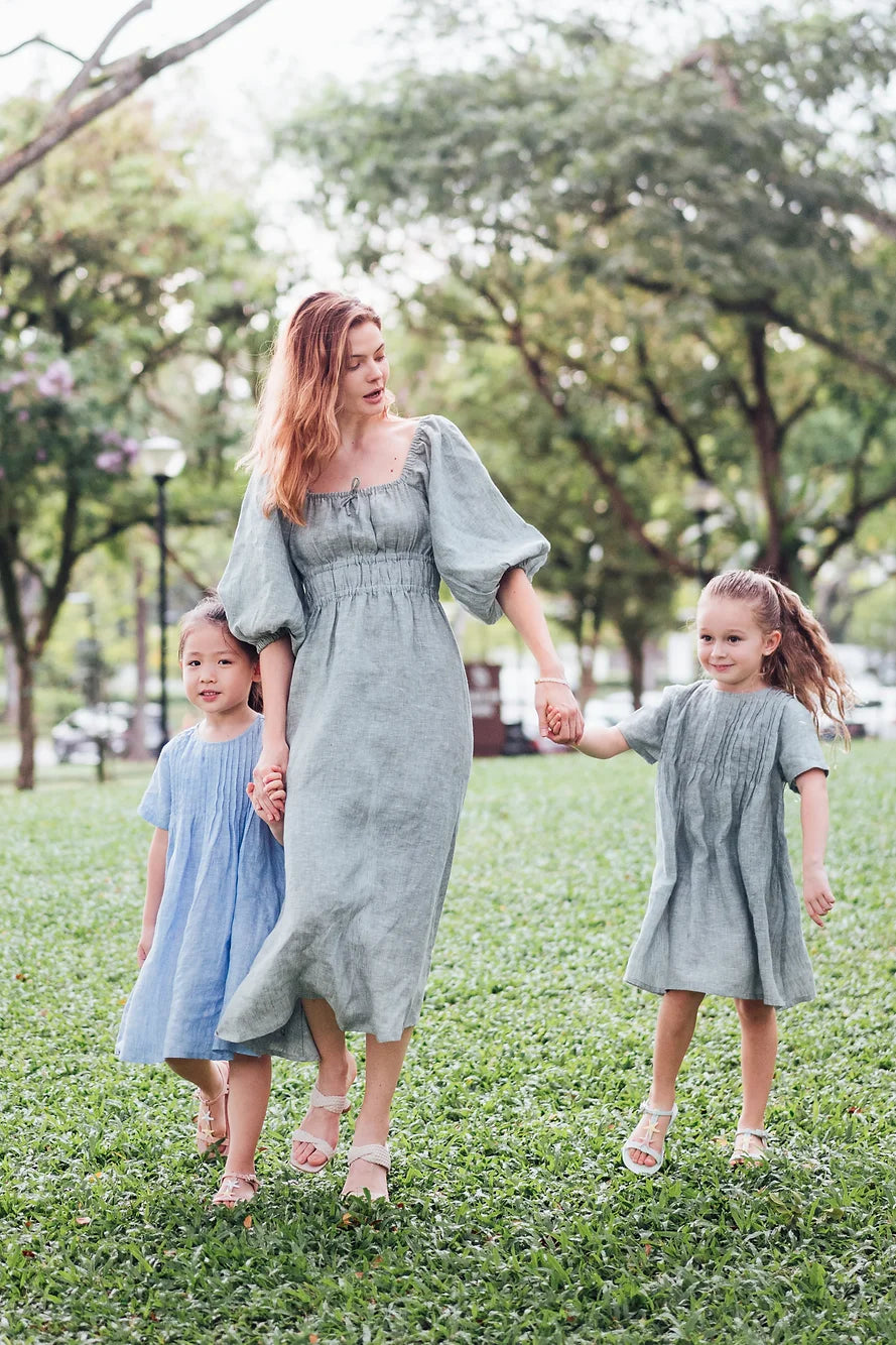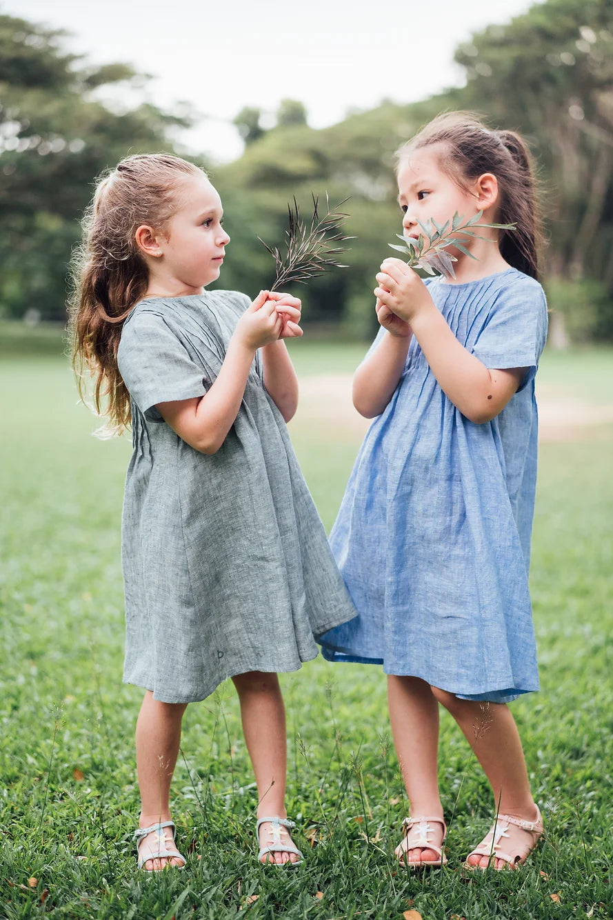 Miranda pleated linen dress for girls