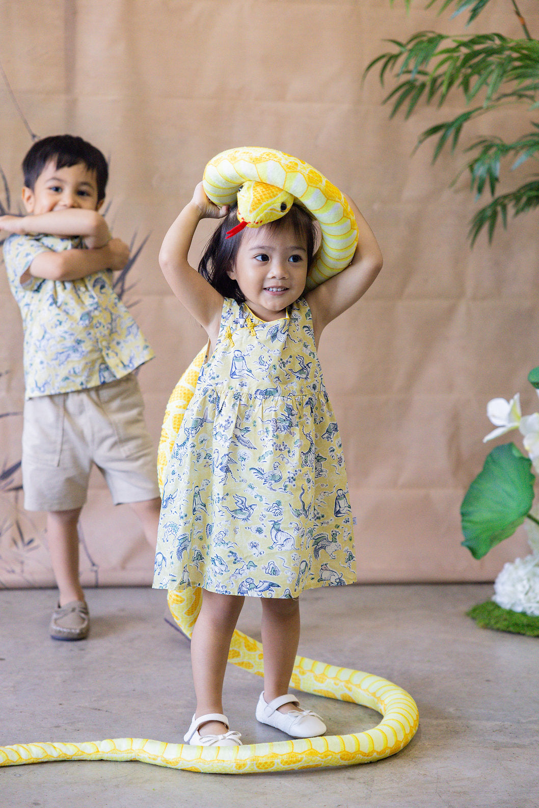 Hand-drawn with soft pencil crayons, this Liberty Tana Lawn fabric showcases Chinese Zodiac animals (yes you will find snakes!) gracefully roaming among clouds, peonies, and iconic Chinese motifs. The textured background adds a touch of softness, celebrating the beauty of hand-drawn artistry.