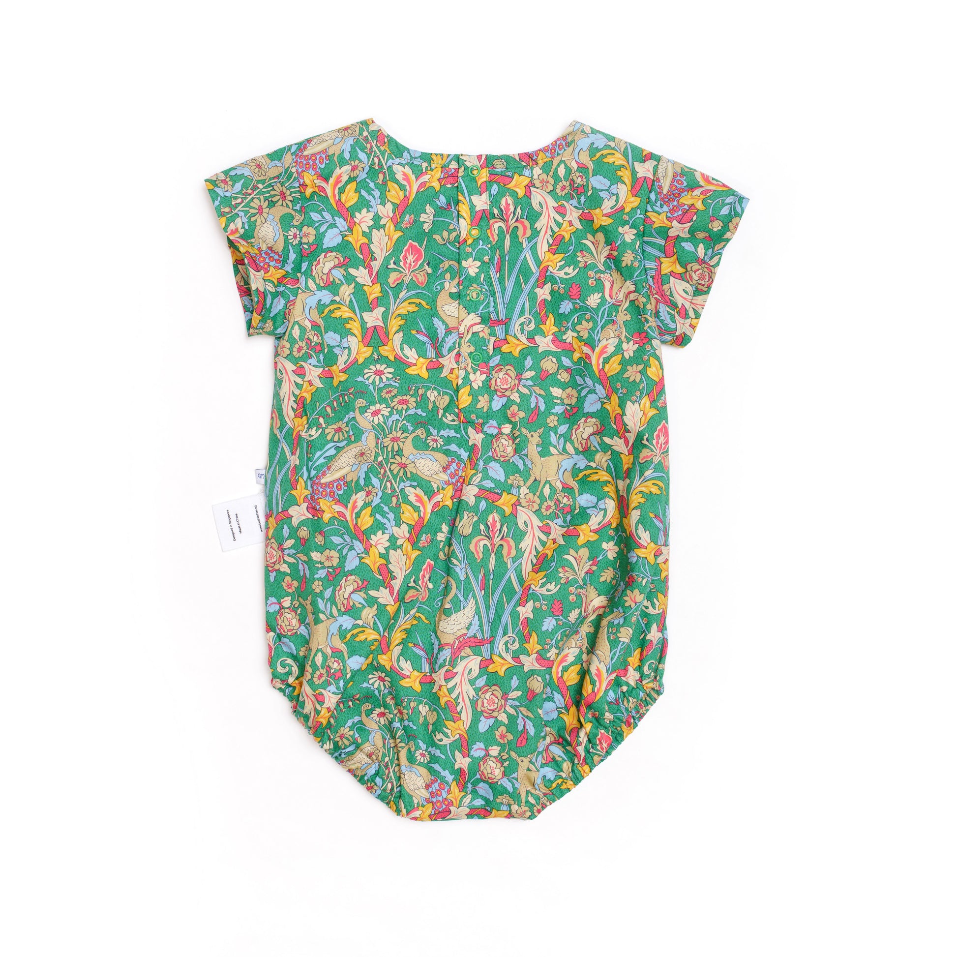 This onesie features a clean round collar and a row of decorative hand-made Chinese knot buttons for a subtle festive touch. Cut in a relaxed silhouette, it allows active little ones to move, play and nap comfortably throughout the day. Snap fastenings at the back and crotch make dressing effortless, whether staying cosy at home or heading out for family visits.