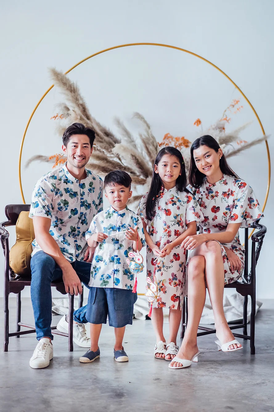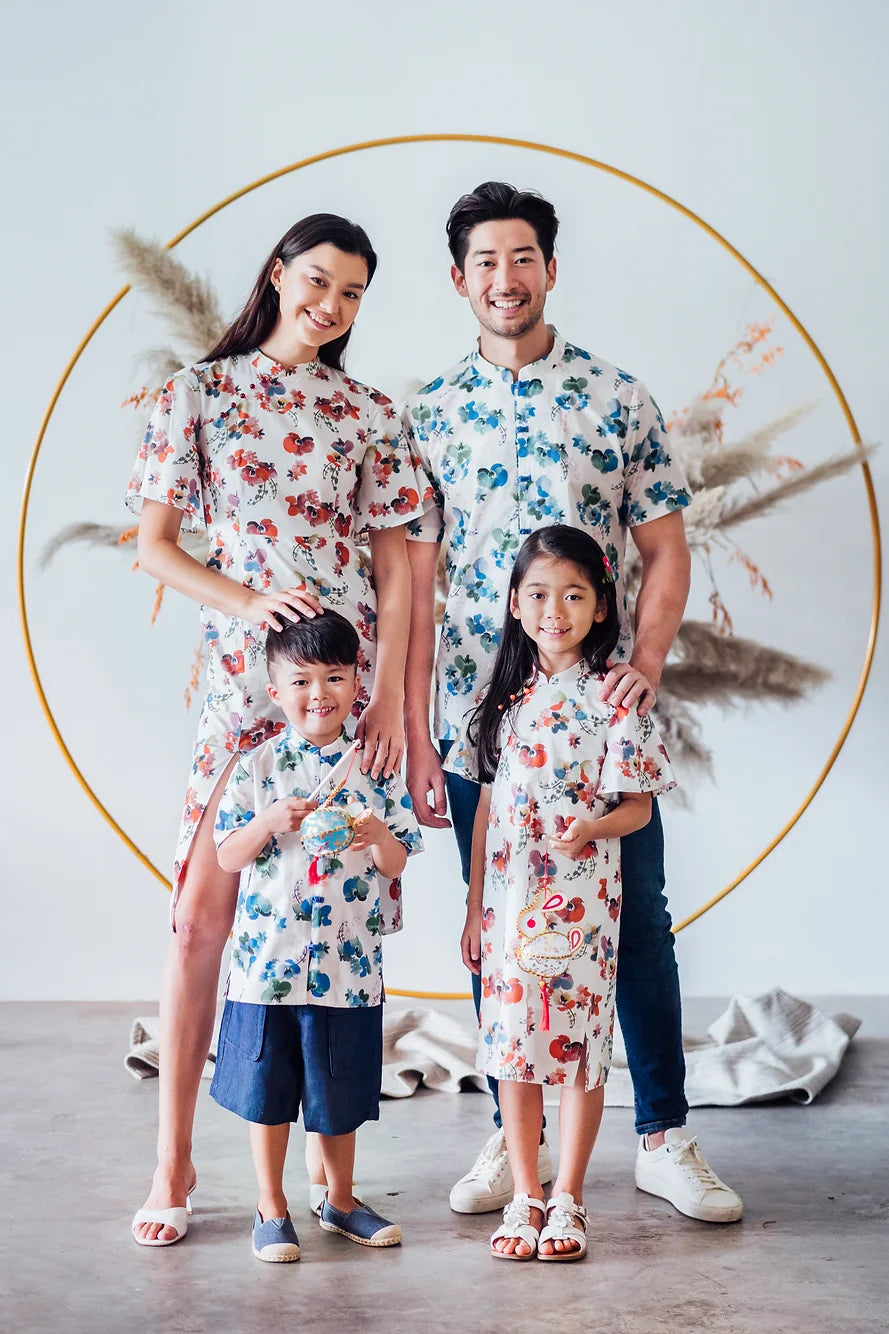 A modern interpretation of traditional cheongsam, featuring flared sleeves, A line cut to allow maximum comfortness, it closes with YKK zipper in the back.