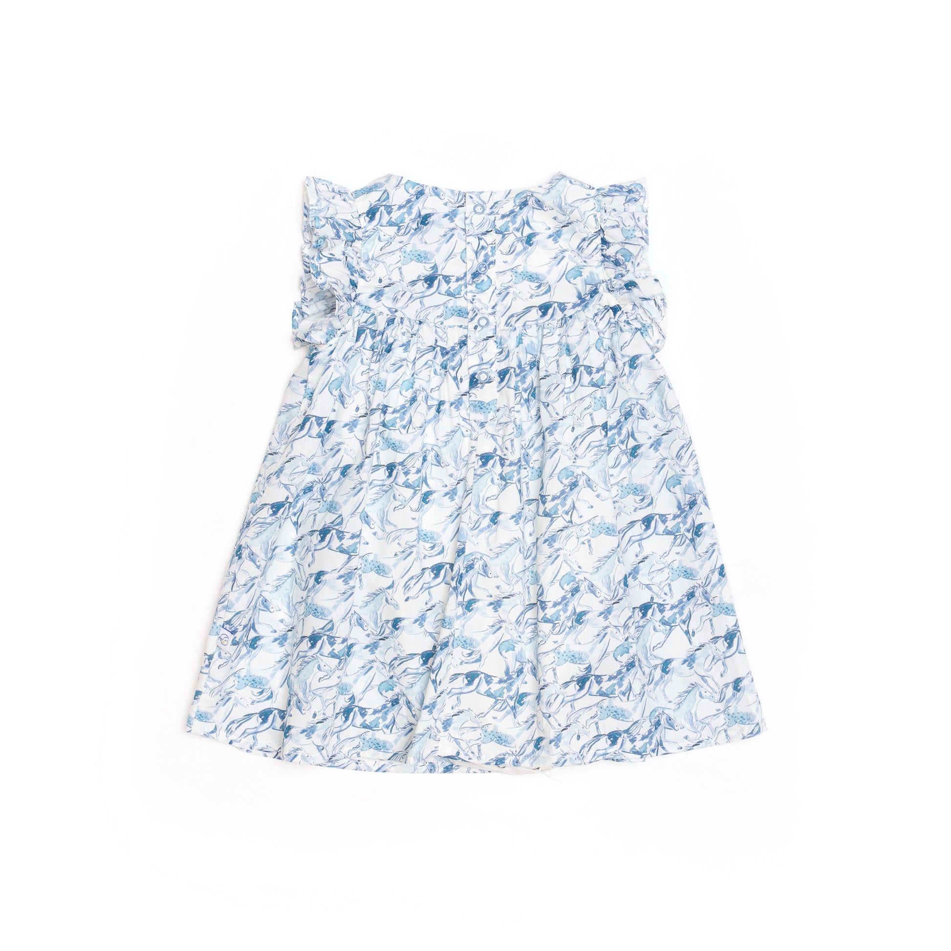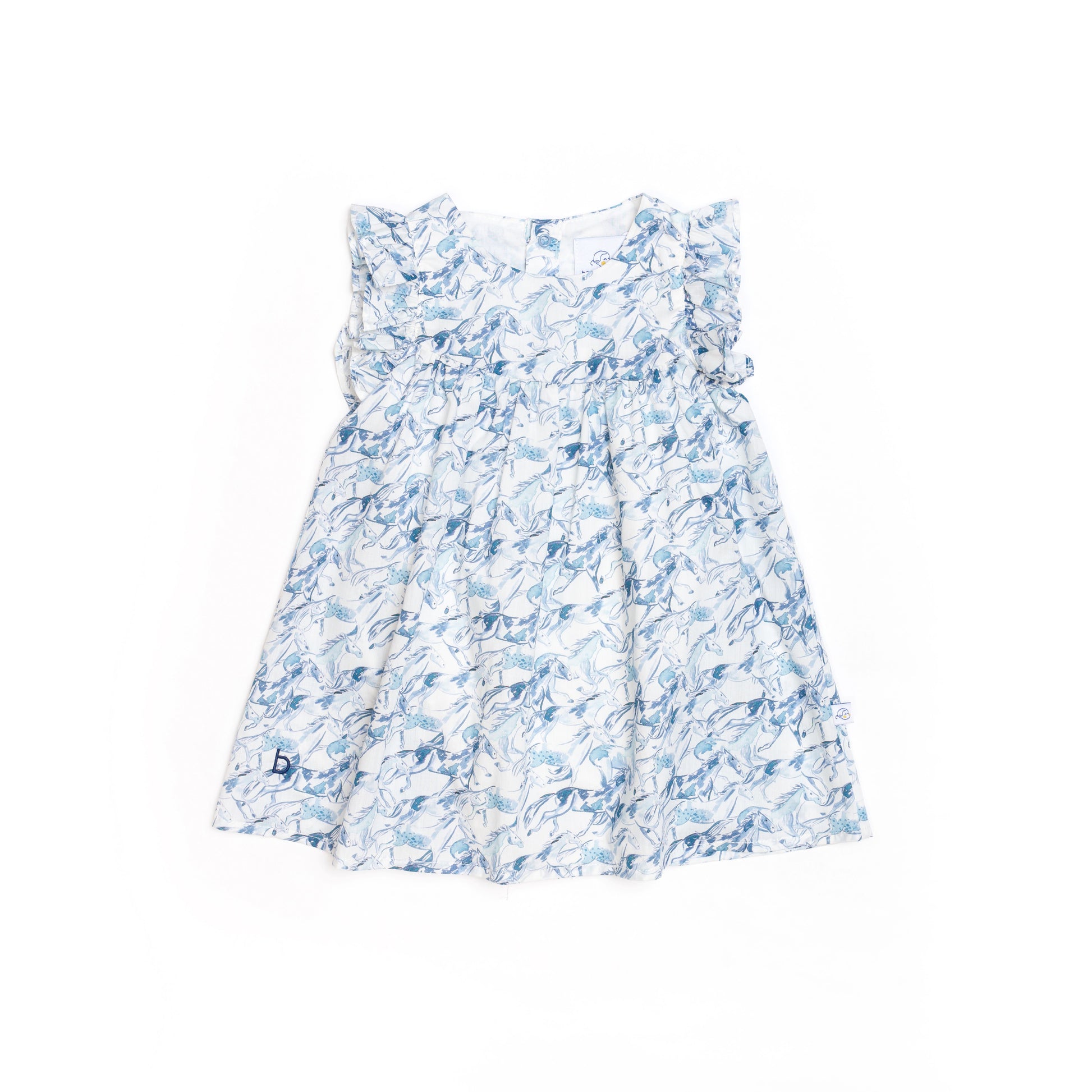 This fully lined onesie dress (a dress on the outside with a romper lining inside) blends sweetness with everyday practicality. The classic A-line silhouette is elevated by whimsical flutter sleeves, creating an irresistibly charming silhouette, while snap-button openings at the back and crotch keep changing simple. Made from breathable Liberty Tana Lawn™ cotton that’s gentle on delicate skin, it’s ideal for festive moments, family photos, and special-occasion dressing in comfort.