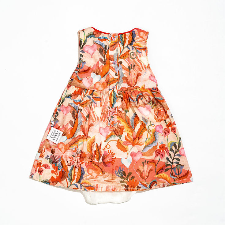 The Queen of Hearts Onesie Dress is made with luxurious Liberty Tana Lawn™ Una Landscape print.