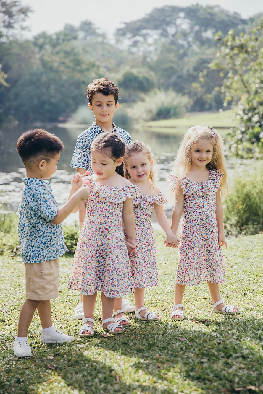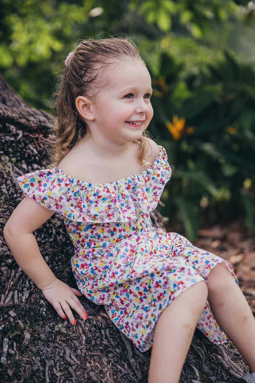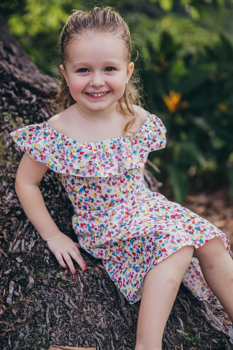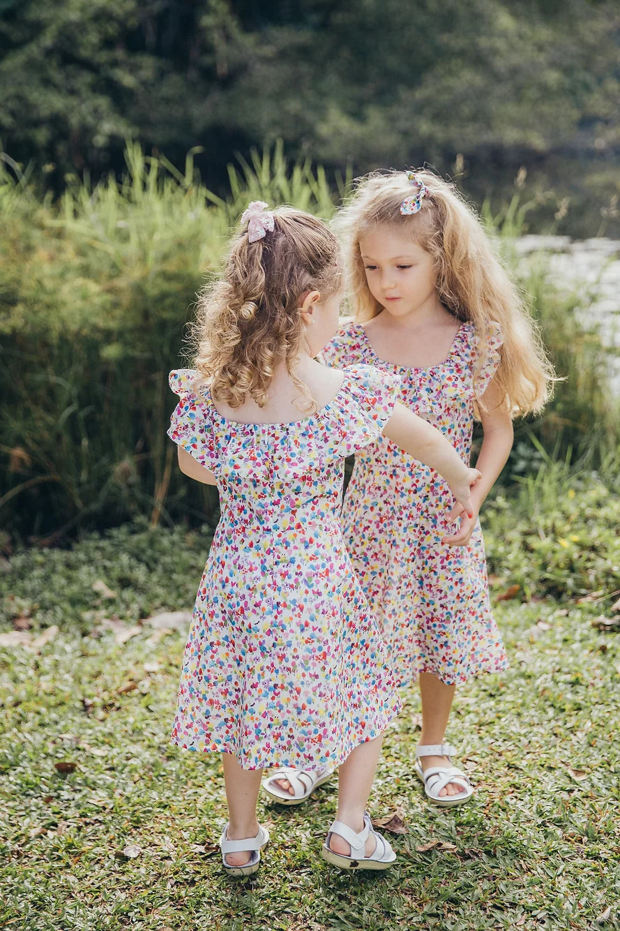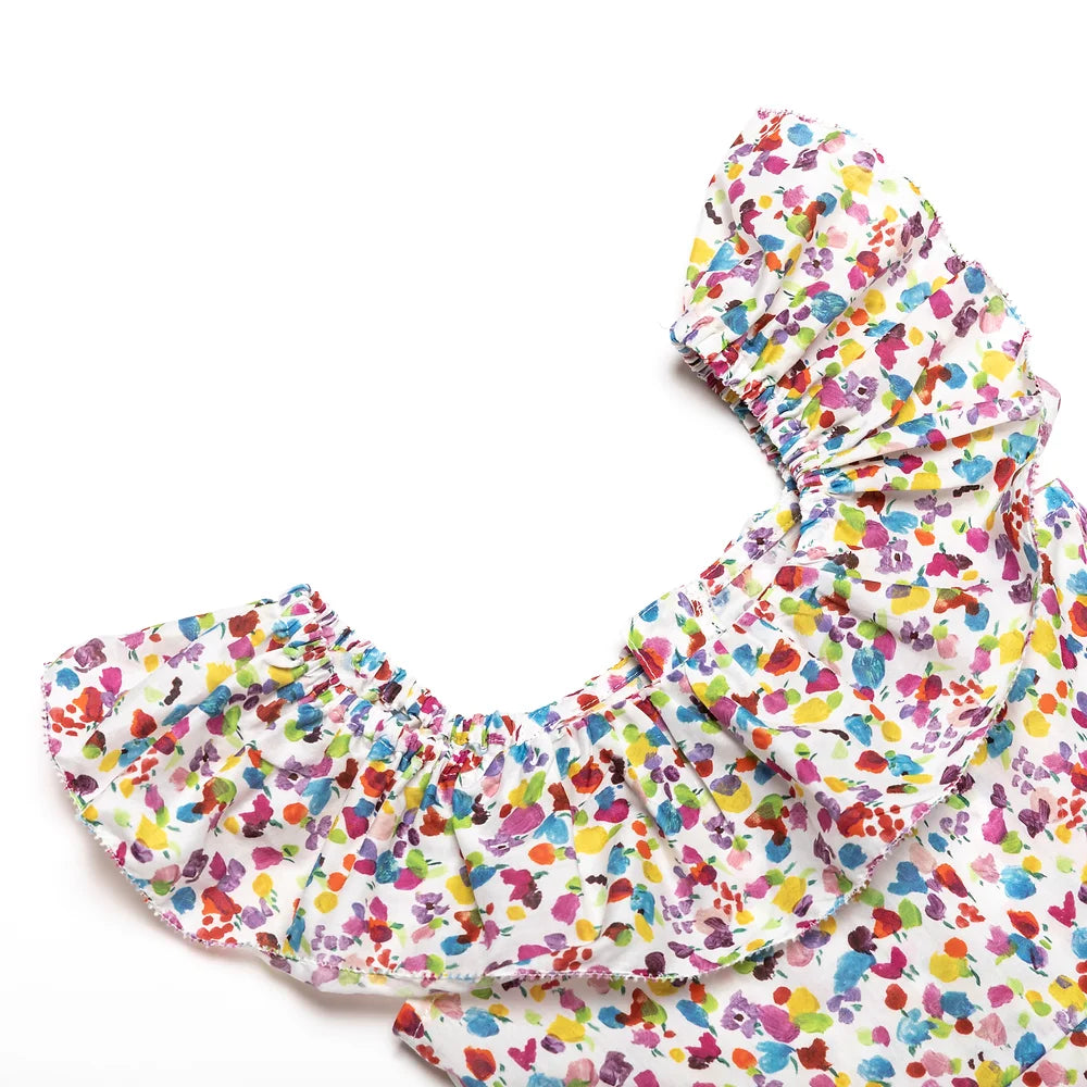 The Liberty Rhasody print is playful and romantic, the ruffly sleeves can be worn above or under the shoulder depending how your girl likes it, this dress is an irresistibly pretty addition to any summery wardrobe.