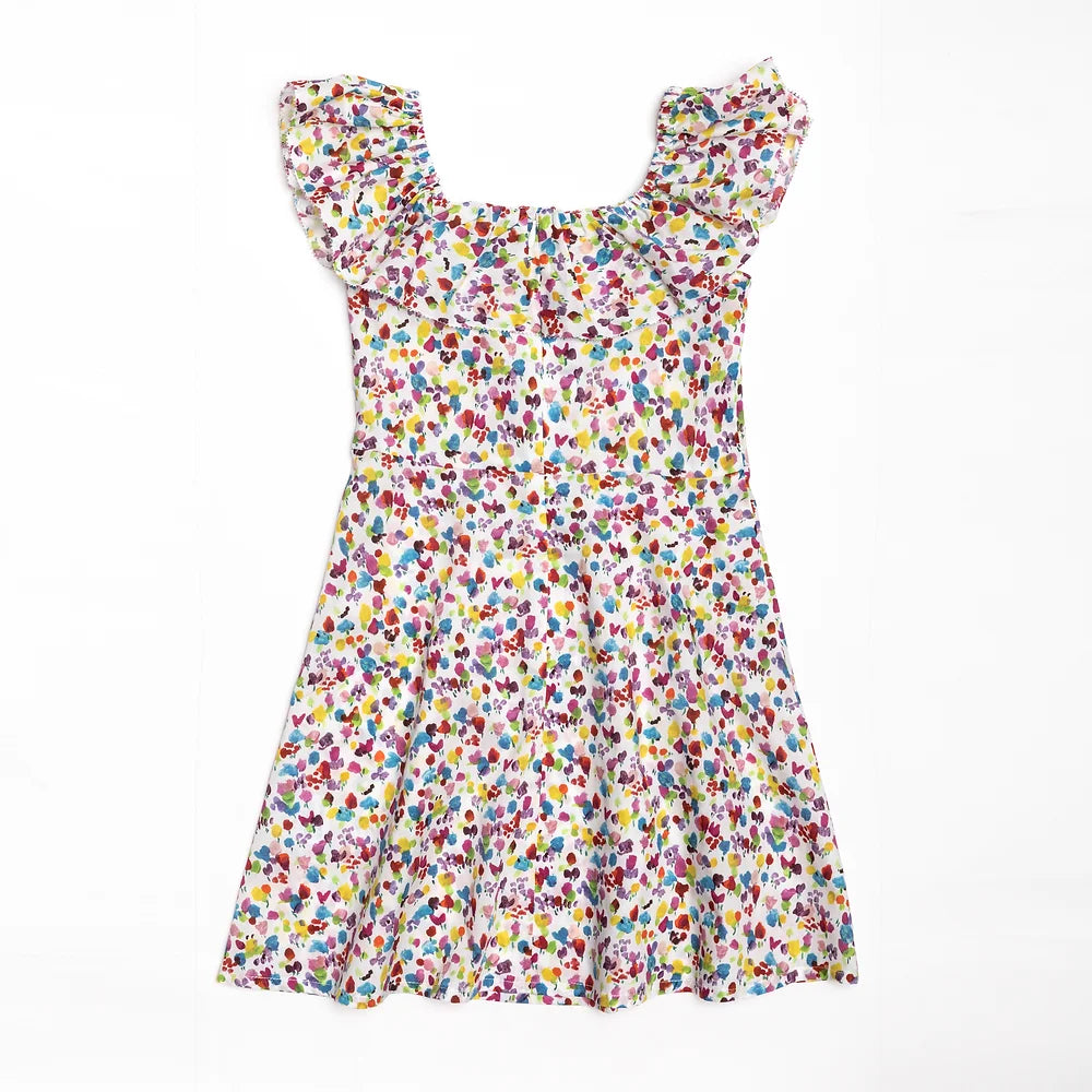 The Rhapsody Dress is made with Liberty Tana Lawn™, it features ruffled neckline and flutter sleeves, and closes with hidden YKK zip at back.