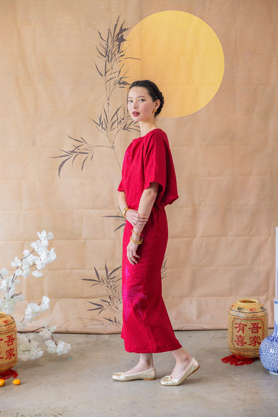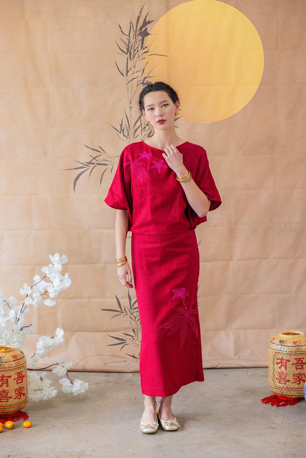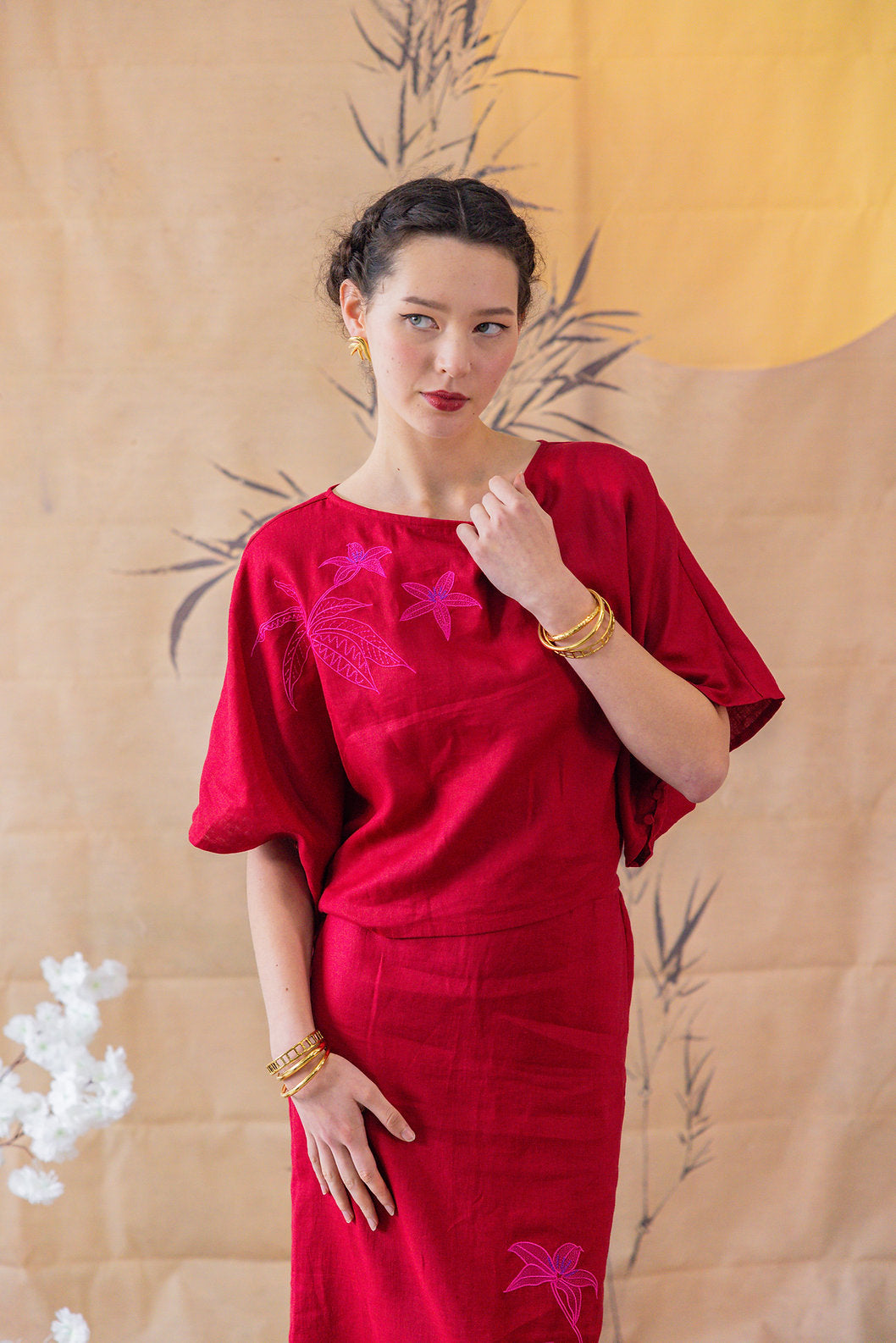 The Ruby Linen Set embodies effortless elegance with intricate details designed to elevate your look.