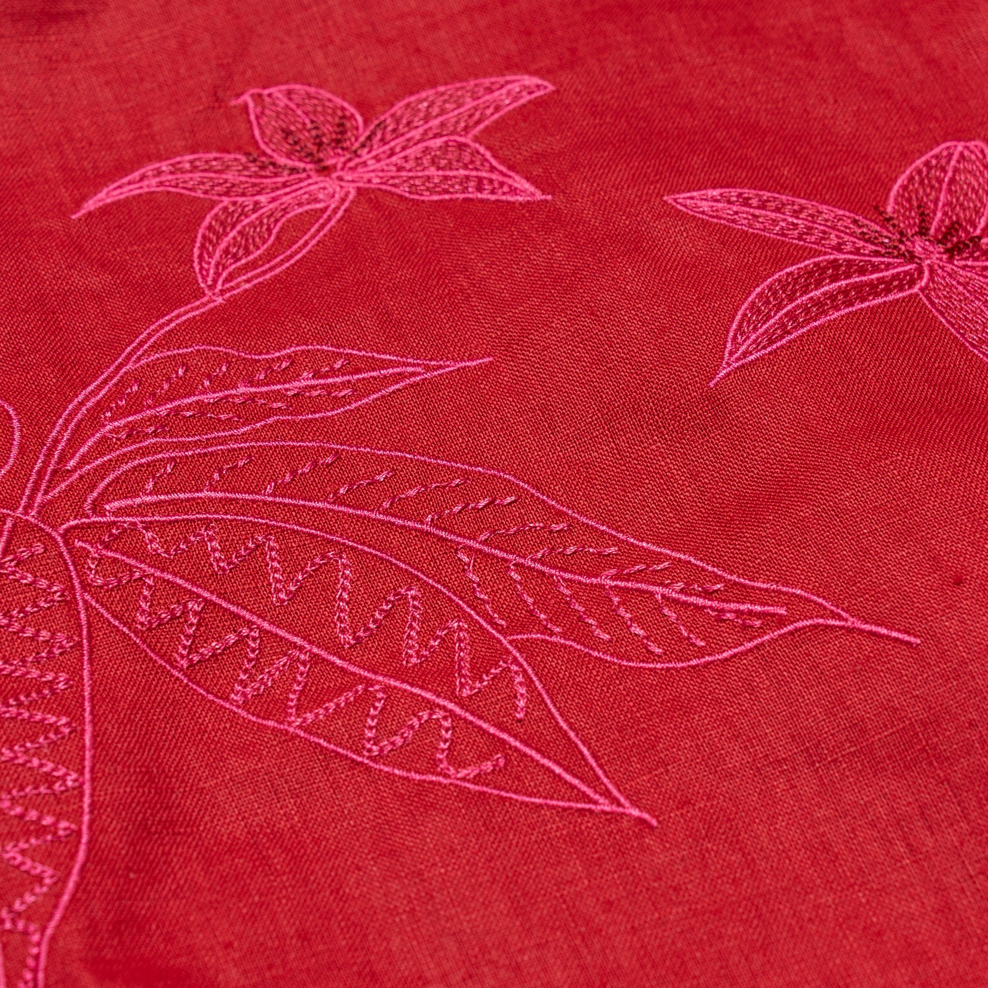 Adding a touch of luxury, the set showcases exquisite 3D floral embroidery on the top and near the hem of the skirt, creating a unique, nature-inspired aesthetic that celebrates femininity. This vibrant ruby red hue flatters a range of skin tones, ensuring you’ll stand out with confidence at any gathering.