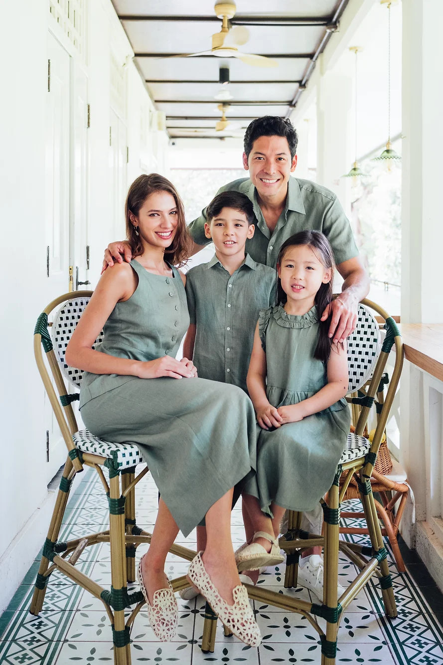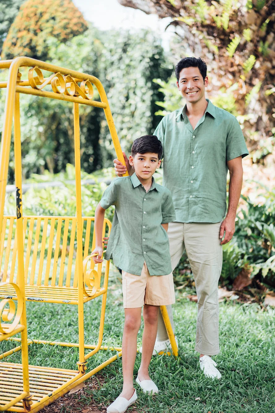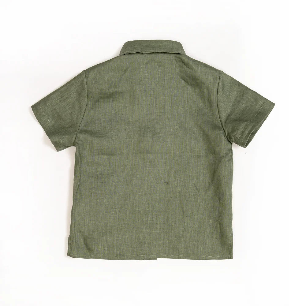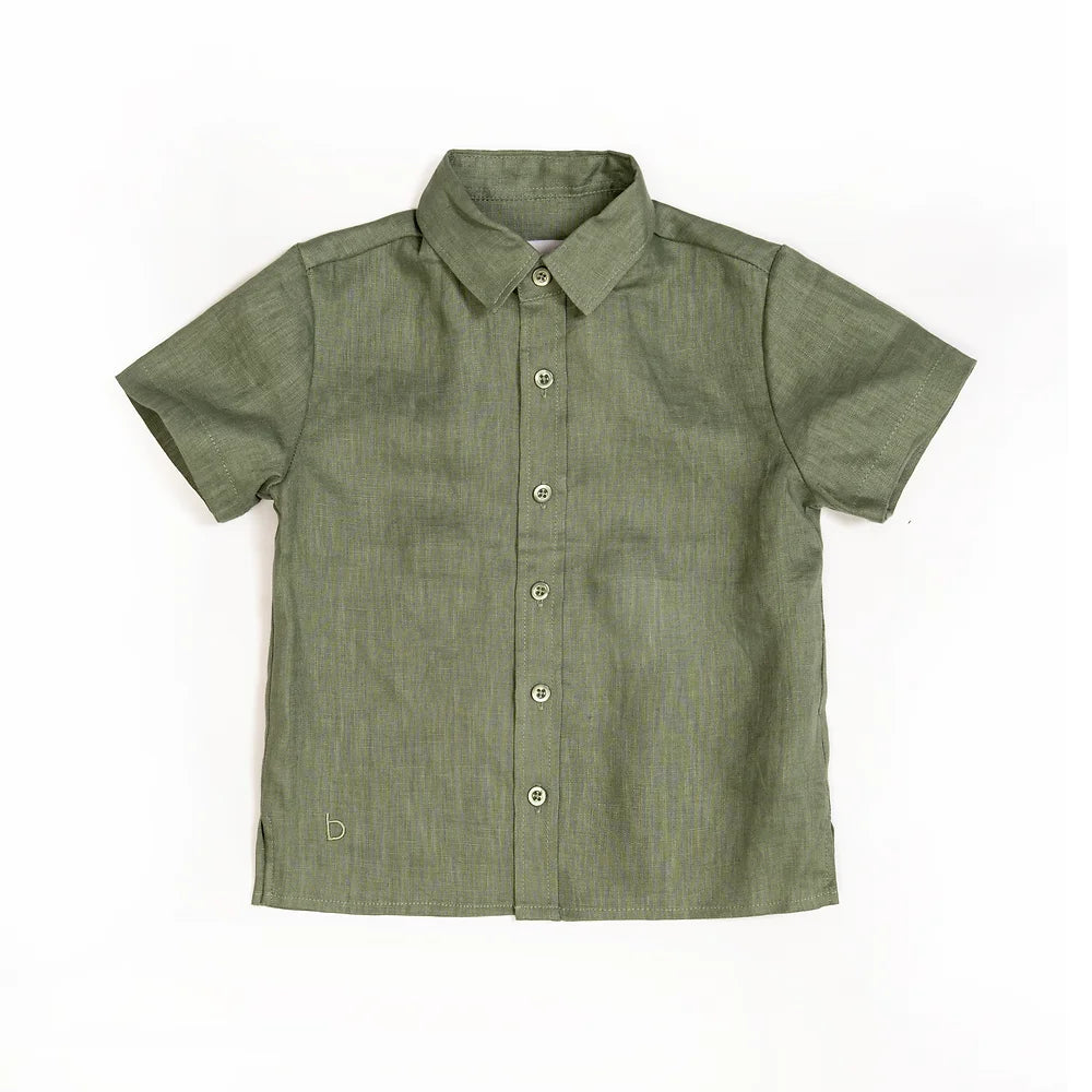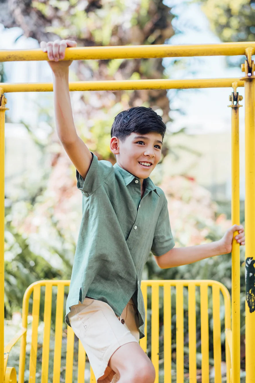 Sambourne Shirt for boy in moss green linen