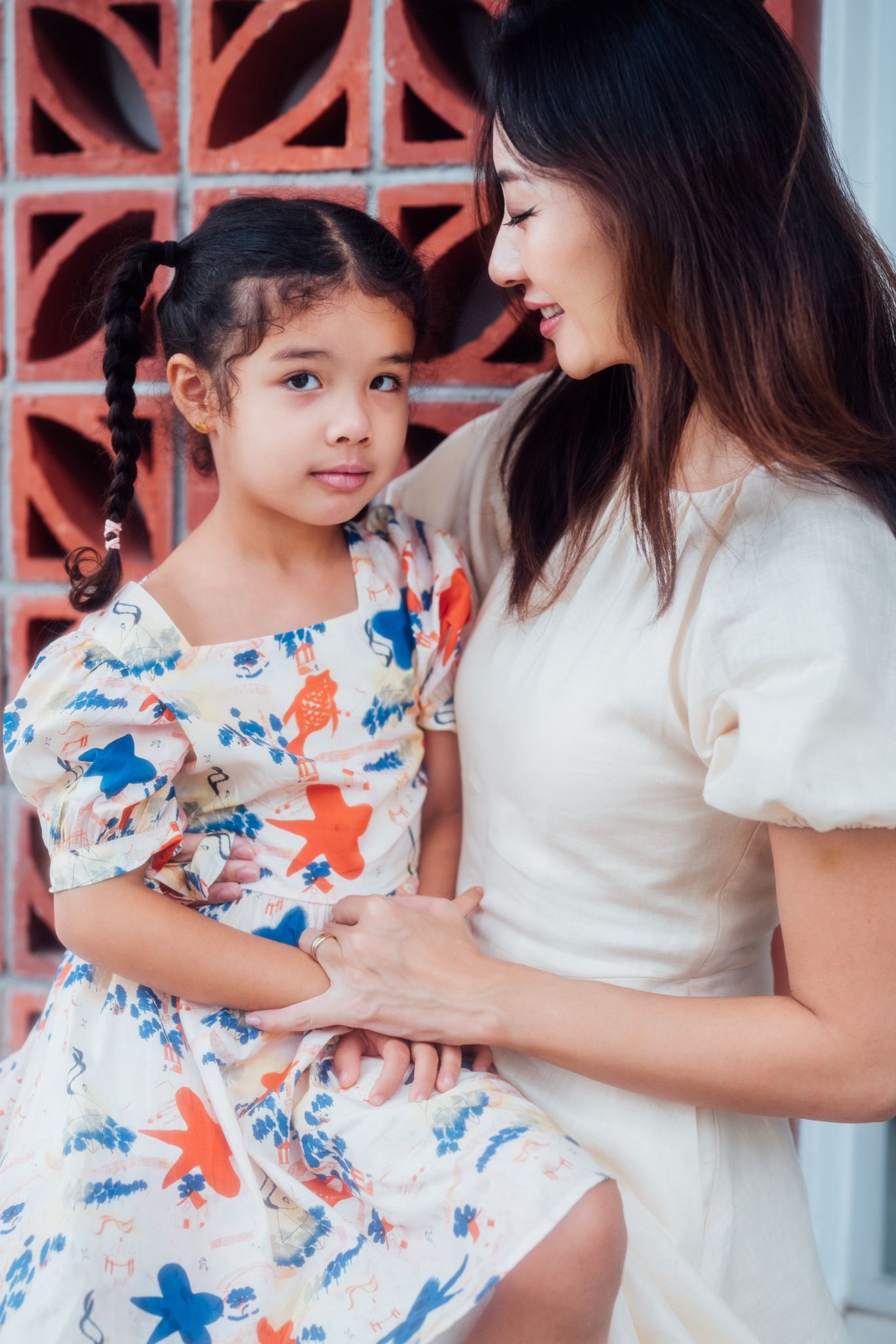 Sora Liberty Print Puff Sleeve Dress with Tie Sleeves for Girl